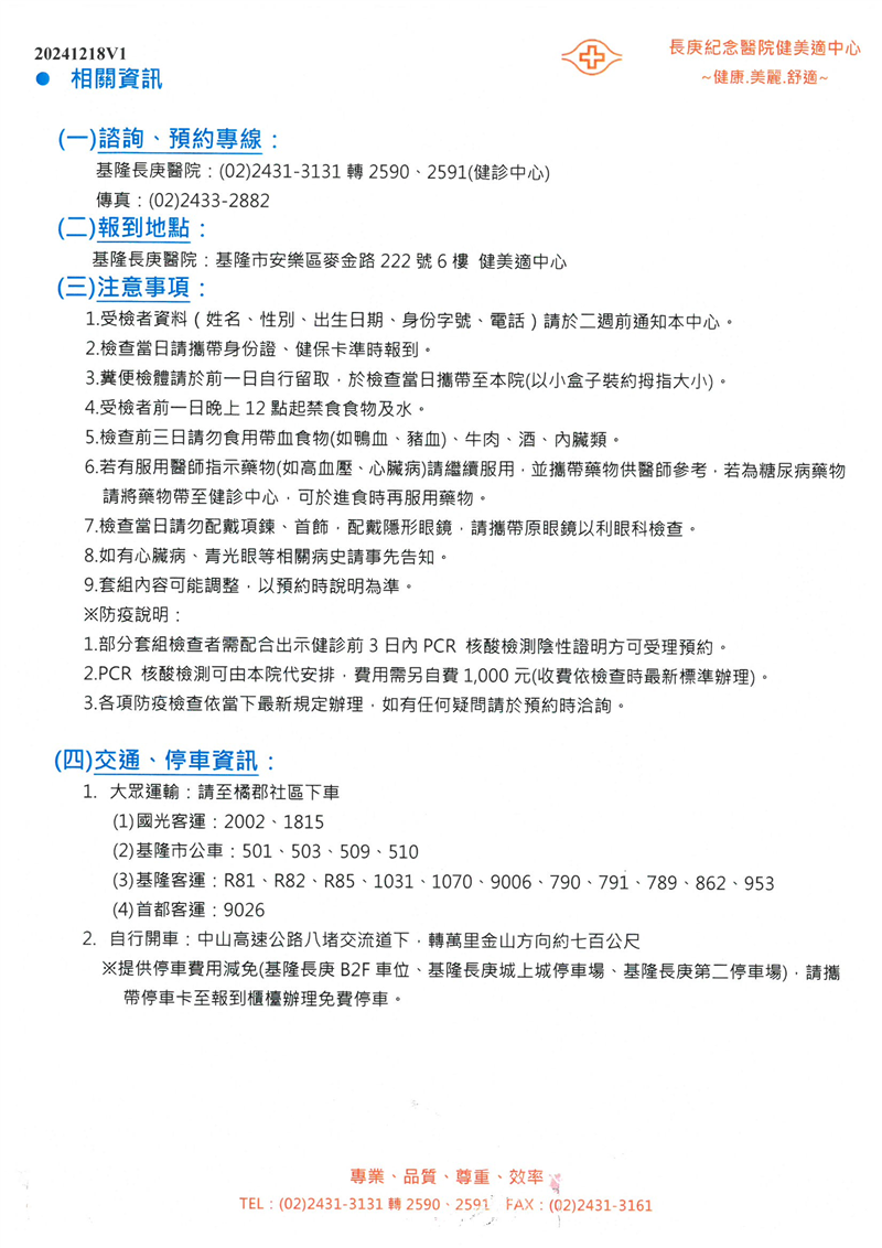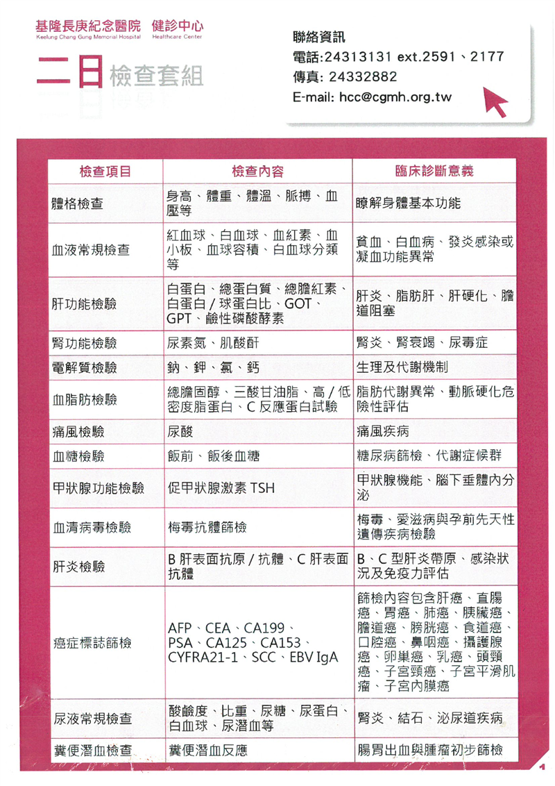 ●檢查時段:每週一、三、單週五。08:00~16:00 (依照預約時段說明為主,所有檢查方案都採預約制,如有需要可直接與聯繫窗口預約)