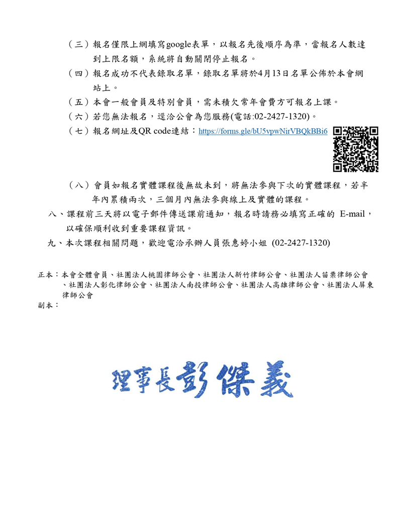 【基律在職進修】115年5月4日與台北市政府法務局舉辦在職進修課程,敬邀各位會員踴躍報名參加。