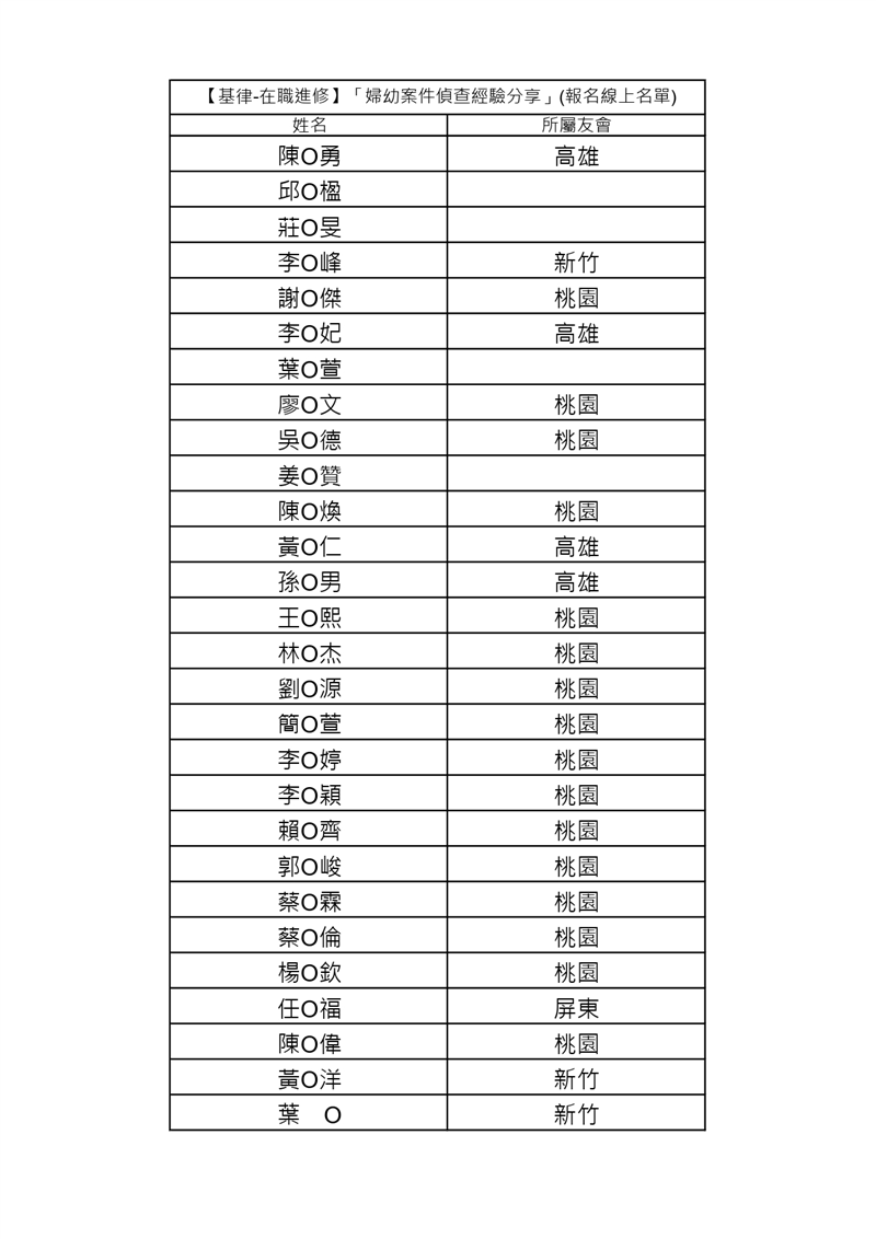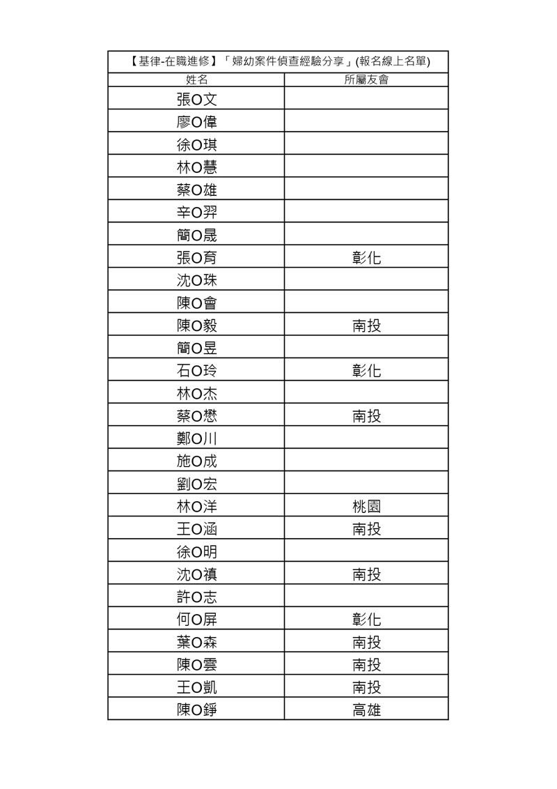 五、提供法院之名單順序,將依本會收受成功報名者之先後次序排列